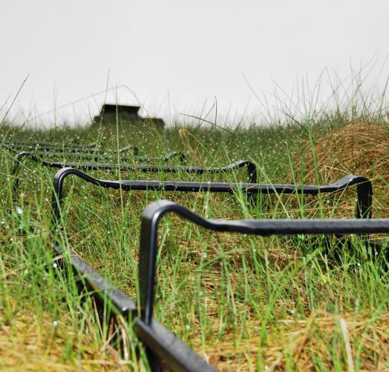 Vi leverer også et eget innfestingssystem for torvtak basert på den samme godkjente takstigen. Takstige for torvtak monteres fast på begge sider av taket ved å skru fast innfestingsdetaljer i torvholdstokken. Løsningen er designet for å være så lite synlig fra bakken som mulig.